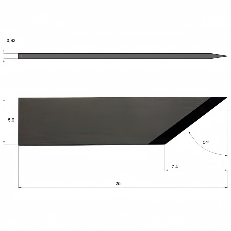 The Atom 01033370 / 01039895 single edge oscillating knife blade is a precision-engineered pointed flat oscillating blade designed for Atom HV1400 and HV1600 digital cutting systems. Featuring a 54° single-edge blade geometry and a maximum cutting depth of 7.4 mm, this blade is optimized for accurate contour cutting, fine details, and clean edge quality across a wide range of flexible and semi-rigid materials.