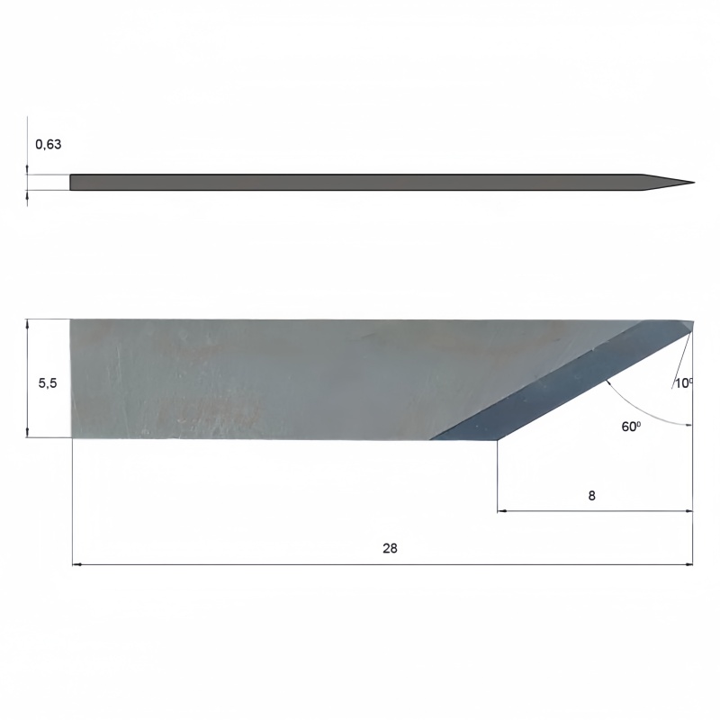 With a maximum cutting depth of 8 mm, flat 0.63 mm mounting, and a standard 28 mm knife height, this blade delivers clean edges and consistent results when processing natural leather, synthetic leather, polyester fabrics, and textile materials.