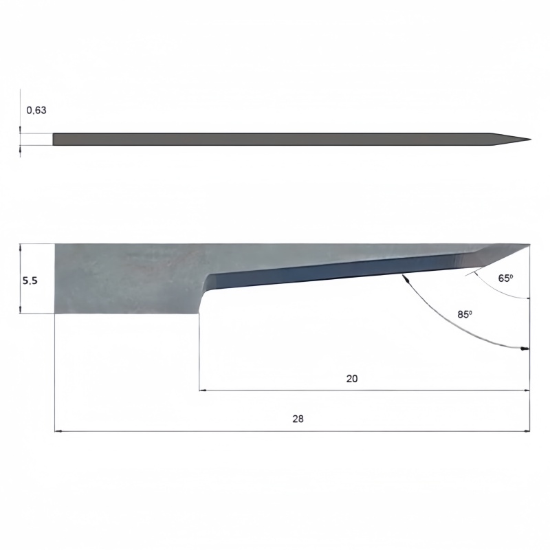 Featuring a flat 0.63 mm mounting, a knife height of 28 mm, and a width of 5.5 mm, the Atom 01033569 provides stable oscillation and excellent edge quality across long production runs. Its tungsten carbide construction ensures durability and long service life, making it ideal for industrial cutting of cardboard, foam, and rubber materials.