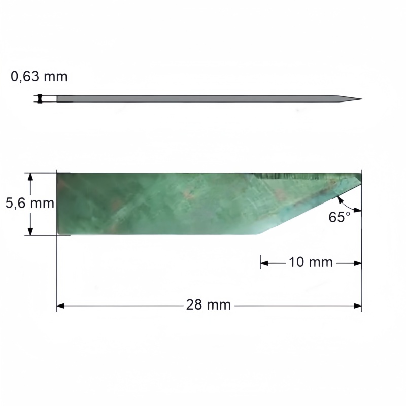 Its 65° geometry allows accurate penetration while maintaining edge stability and minimizing material tearing.