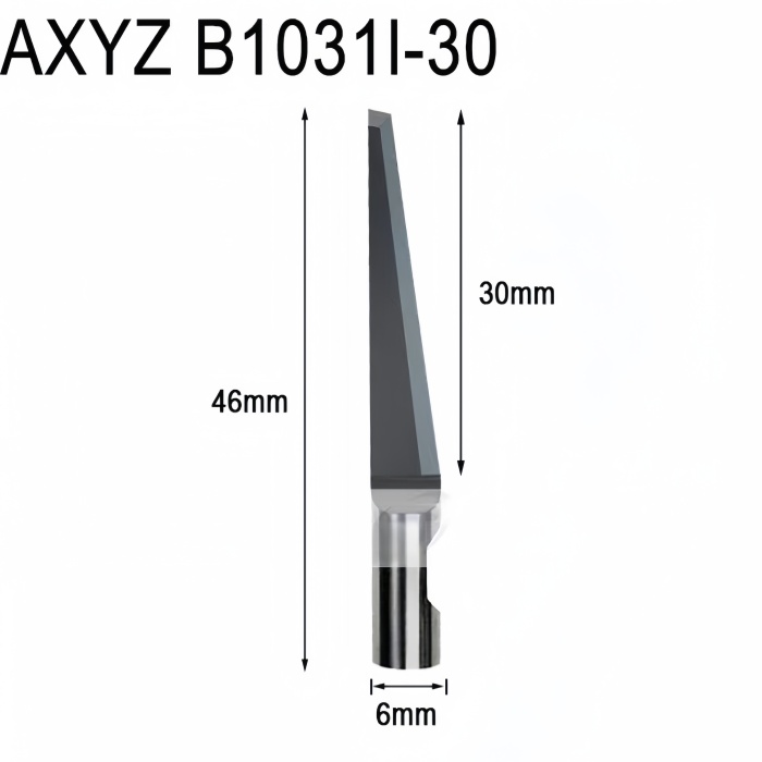 The AXYZ B1031L-30 MultiCam BT-57230 Oscillating Knife Blade is designed for use with AXYZ and MultiCam CNC cutting machines, providing high-performance capabilities for cutting a wide range of materials. Featuring an 82.3° cutting angle, this blade is perfect for handling both delicate and robust materials, from textiles to carbon fibers and foam boards.