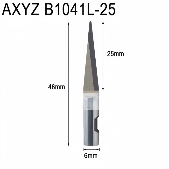 The AXYZ B1041L-25 Multicam BT-57268 Oscillating Knife Blade is a premium-grade CNC cutting tool designed to deliver exceptional performance on AXYZ and Multicam digital cutting systems. With its robust 6 mm round shank and high cutting angle of 83.9°, this blade is optimized for precision cutting of thick materials up to 25 mm.