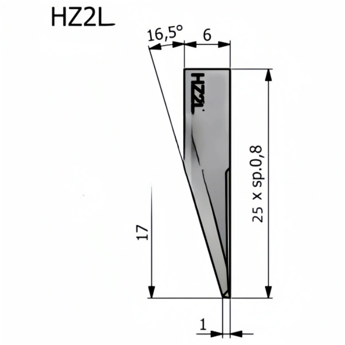 Its compact 25 mm length and 6 mm height make the HZ2L ideal for detailed contour cutting, tight radiuses, and fine work in materials such as corrugated cardboard, felt, foam board, folding carton, and rubber. The pointed geometry enhances accuracy in intricate patterns, making it especially suitable for packaging, footwear components, gaskets, foam inserts, and craft production.