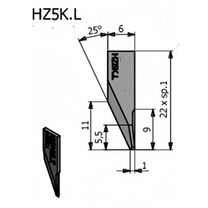 The Comelz HZ5K.L Oscillating Knife Blade is a precision-engineered tungsten carbide blade designed for Comelz CNC cutting systems. With a 1 mm flat mounting interface and a 25° pointed cutting angle, this blade ensures accurate, clean-edge cuts across a variety of flexible and semi-rigid materials.