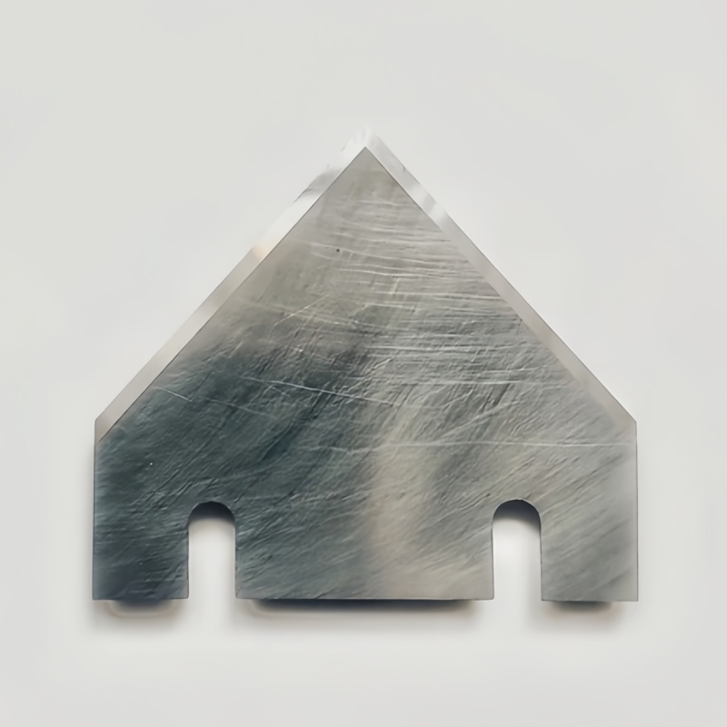 Replacement tungsten carbide V-cut blade BLD-DF571 (G42460766) for Esko Kongsberg. Special made arrow shaped V-notch, 16mm cut length, 1mm thickness, flat shank.