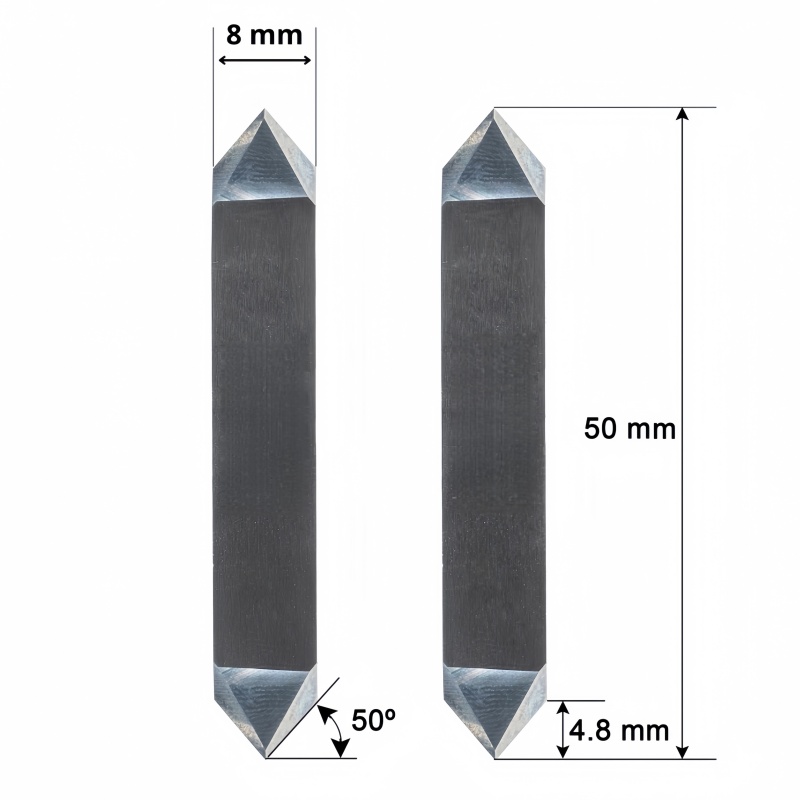 Superior 50° Flat Blade Design: The 1.5mm thickness and 50-degree geometry provide the perfect structural rigidity for "Kiss Cutting" and through-cutting dense materials like Polycarbonate and PVC.