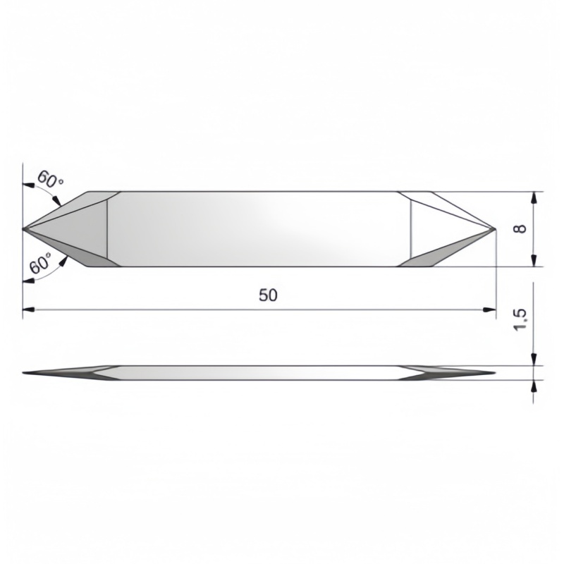 Enhanced Tool Geometry: The 50° angle combined with a 1.5mm thickness provides the necessary rigidity to maintain straight cuts in dense Hard plastics and Polycarbonate without blade deflection.