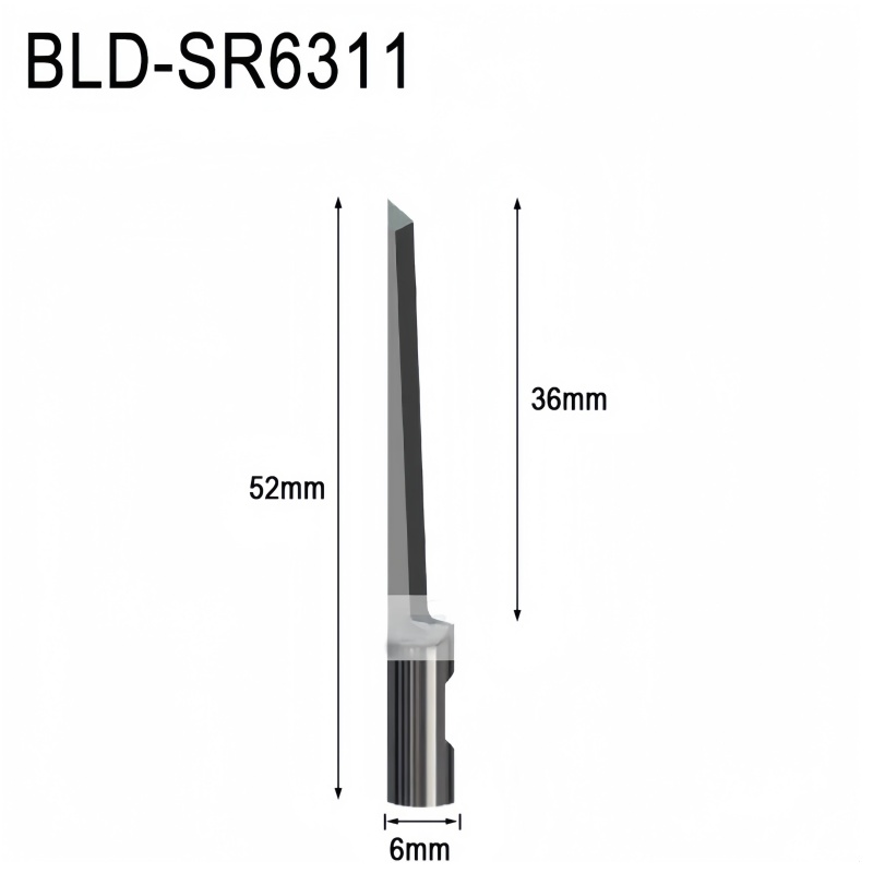 Industrial BLD-SR6311 (G42443101) tungsten carbide oscillating blades for Esko Kongsberg. 36mm max cutting depth, 87.5° angle. Specially designed for precise cutting in Honeycomb and Foam board. Factory-direct consumables.