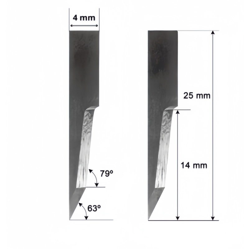The BLD-SF422 flat pointed blade is a premium tungsten carbide cutting tool designed for Esko Kongsberg digital cutting machines. With dual cutting angles of 63° and 79° and a maximum cutting depth of 14 mm, it provides precise and durable cutting for corrugated cardboard, corrugated plastic, and foam boards.