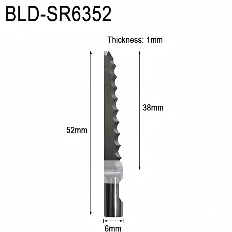 Industrial-grade BLD-SR6352 (G42456939) serrated carbide oscillating blades for Esko Kongsberg. 60° angle and 38mm cutting depth. Optimized for Honeycomb, Expanded Polystyrene (EPS), and Foam board. Factory-direct durable tools.