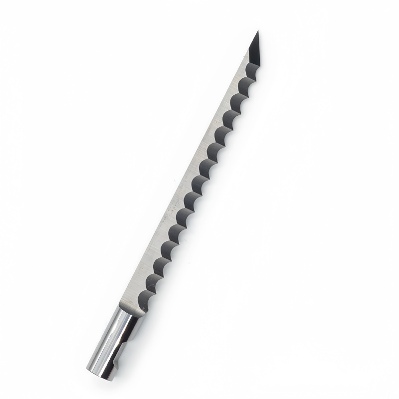 Aggressive Serrated Edge: The serrated profile provides a continuous micro-sawing action, which is essential for slicing through the fibrous or cellular structures of PE foam and Honeycomb without pulling or tearing the material.