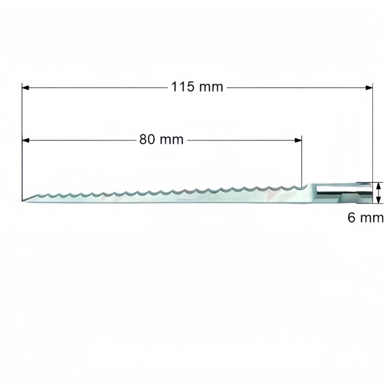 Replacement tungsten carbide oscillating serrated blade BLD-SR6853 (G42475715) for Esko Kongsberg. Max cutting depth 80.00 mm, 6 mm round shank.