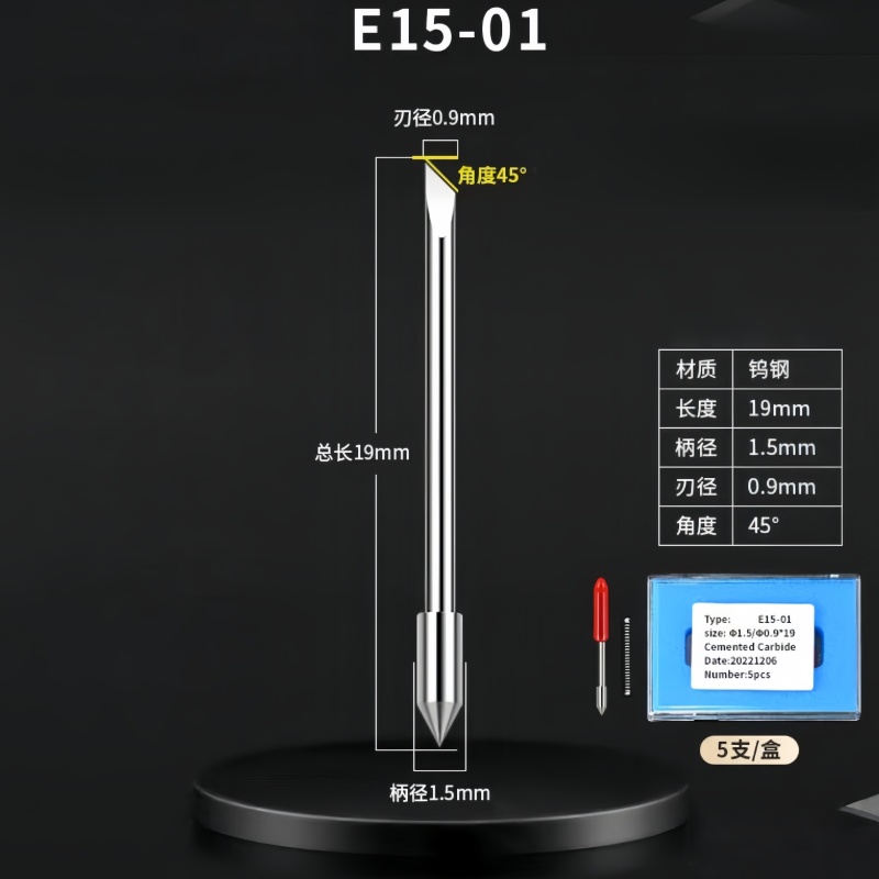 Manufactured from tungsten carbide, the iEcho E15-01 drag blade provides stable edge performance and reliable cutting accuracy in label production, signage graphics, and decal manufacturing. Its design supports quick blade replacement and easy integration with iEcho kiss cut