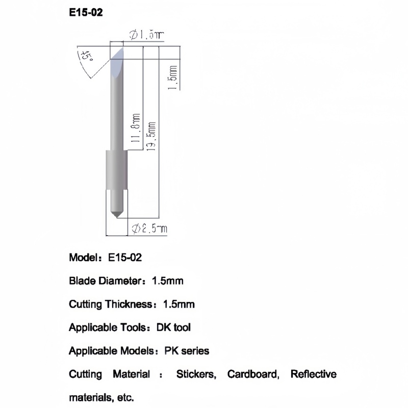 The iEcho E15-02 Kiss Cut Blade is a tungsten carbide drag blade developed for precision kiss cutting on iEcho digital cutting machines. As an OEM-compatible iEcho replacement blade, the E15-02 is designed for accurate surface cutting where the top layer is cut cleanly while the backing liner remains intact.