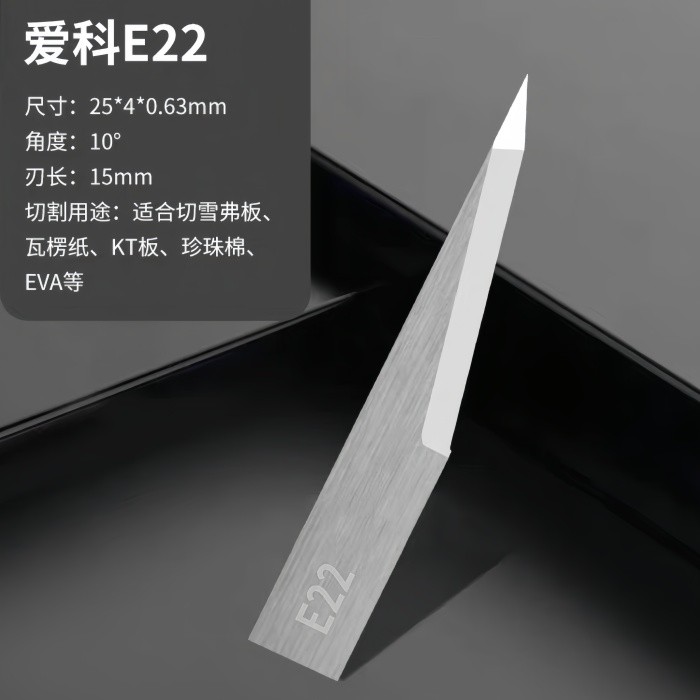 Featuring a blade height of 25 mm and a maximum cutting depth of 14 mm, the E22C delivers stable, accurate, and efficient cutting performance. Its slim 4 mm width and 0.63 mm thickness ensure clean contouring, excellent maneuverability, and superior detail cutting even in complex patterns.