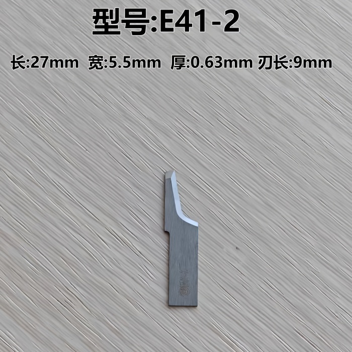Featuring dual cutting angles of 18° and 80°, the E41-2 provides excellent sharpness for detailed work while maintaining durability for continuous industrial use. With a blade height of 27 mm, a width of 5.50 mm, and a maximum cutting depth of 9 mm, this blade offers reliable performance across both thin and moderately thick materials.