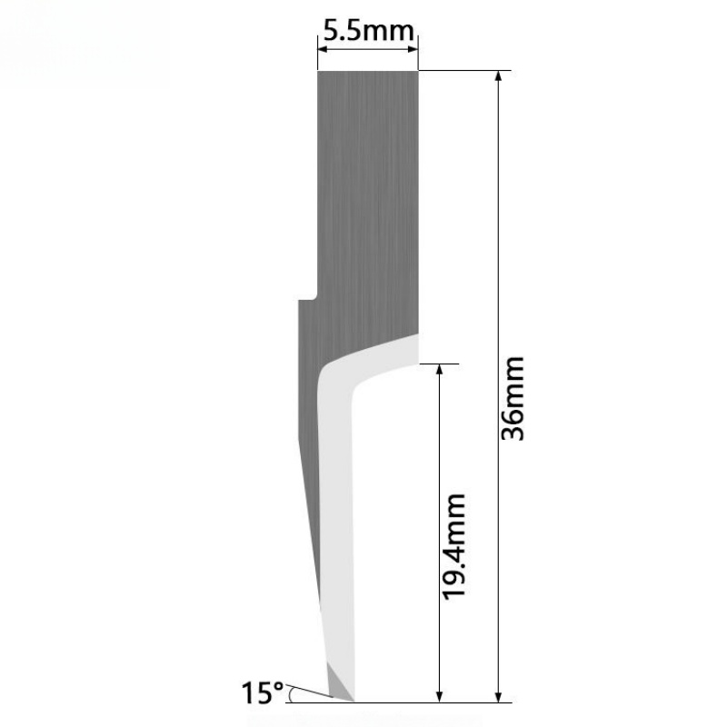 With a 36 mm blade height and a maximum cutting depth of up to 18 mm, this iEcho oscillating knife blade is well suited for cutting corrugated cardboard, foam board, expanded polystyrene (EPS), polyethylene foam, PU sponge, and felt. The 0°–19° pointed cutting angle allows smooth material penetration and precise corner definition, especially in foam and soft substrates.
