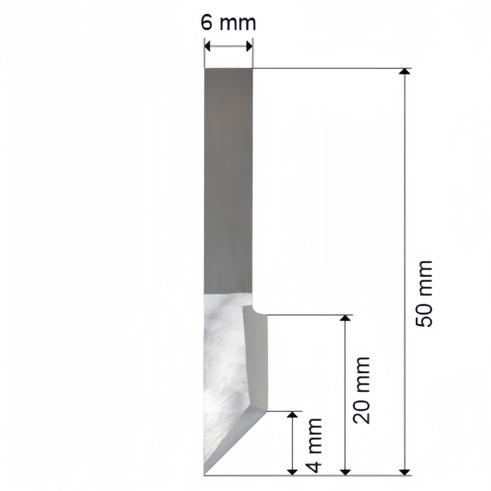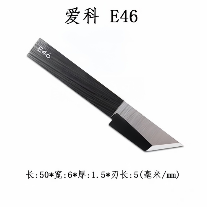 Featuring a 50 mm blade height, 6 mm blade width, and a maximum cutting depth of 20 mm, the E46 blade provides outstanding rigidity and stability during high-speed cutting. Its robust design allows for precise contouring, clean straight cuts, and excellent performance on medium-to-thick substrates.