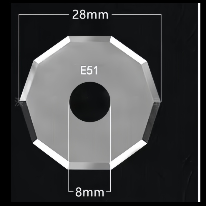 The iEcho E51 Decagonal Rotary Knife Blade is a precision-engineered 10-sided rotation blade designed for high-speed, low-resistance cutting of flexible and technical textile materials. With an 8 mm mounting hole and a slim 0.60 mm thickness, the E51 blade rotates smoothly during cutting, minimizing drag and material distortion.