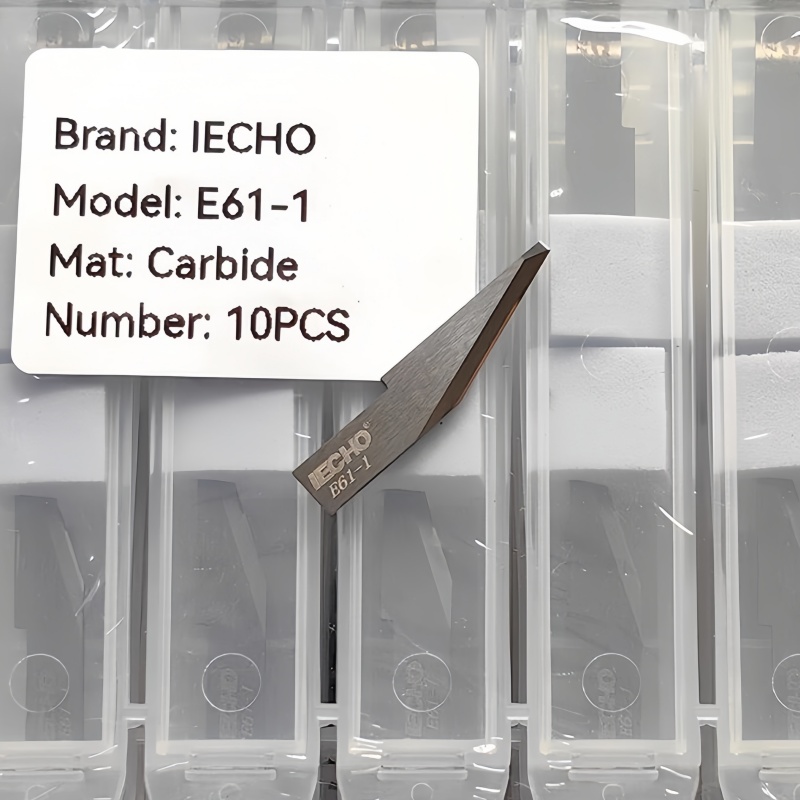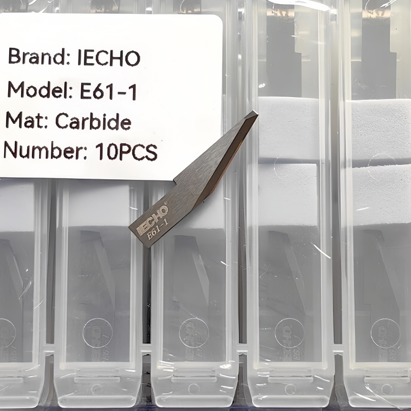 The iEcho E61-1 Oscillating Knife Blade is designed for high-performance cutting with iEcho digital cutting machines, providing precise results across a variety of materials. This blade features a 70° cutting angle, ensuring smooth entry and excellent cutting stability, ideal for materials such as carbon fibers, corrugated cardboard, felt, glass fibers, leather, non-woven fabric, nylon fabric, polyester fabric, and rubber.