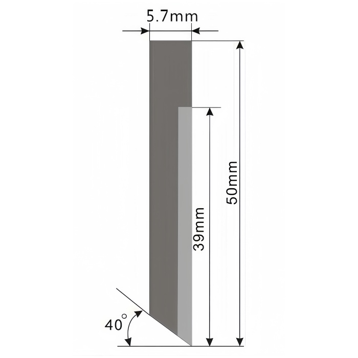 With a 50 mm blade height and a maximum cutting depth of up to 39 mm, this oscillating V-cut knife blade delivers clean, controlled cuts in corrugated and foam-based materials. The 40° cutting angle provides smooth material penetration and stable cutting performance, making it suitable for both straight cuts and shaped contours.