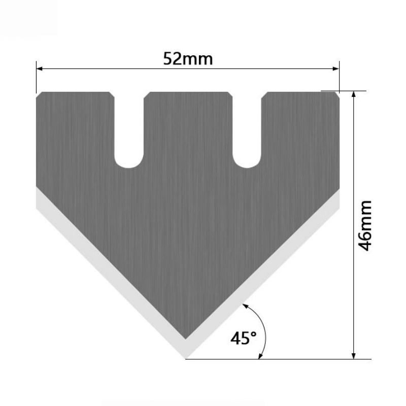 With a 52 mm blade height and a maximum cutting depth of up to 26 mm, this V-cut knife blade provides controlled and precise cutting for cardboard and corrugated cardboard materials. The 45° V-cut angle creates clean bevel edges, making it ideal for KT board processing, packaging samples, display boards, and folding carton applications.