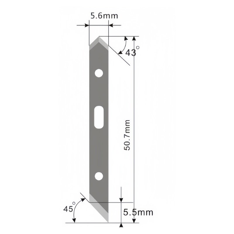 With a 50.7 mm blade height and a maximum cutting depth of up to 5.5 mm, this drag knife blade for iEcho cutters is optimized for surface-level cutting tasks. The 45° cutting angle allows smooth material entry and controlled blade tracking, improving cut accuracy during drag cutting operations.