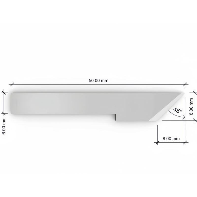 With a robust 1.50 mm thickness and a 45° cutting angle, the Z102 offers superior mechanical stability and a sharp, efficient edge profile. It is technically specified for a maximum cutting depth of 7.80 mm, making it an ideal choice for processing a wide array of flexible and semi-rigid substrates, including heavy-duty tarpaulins, PVC, polyester fabrics, and corrugated plastics. The 1.5 mm flat mounting shank ensures a secure, vibration-free fit within the tool holder, delivering clean, precise edges and consistent performance across industrial sign-making, technical textile, and packaging applications. The premium carbide construction ensures maximum wear resistance and extended edge life, even when processing abrasive materials.