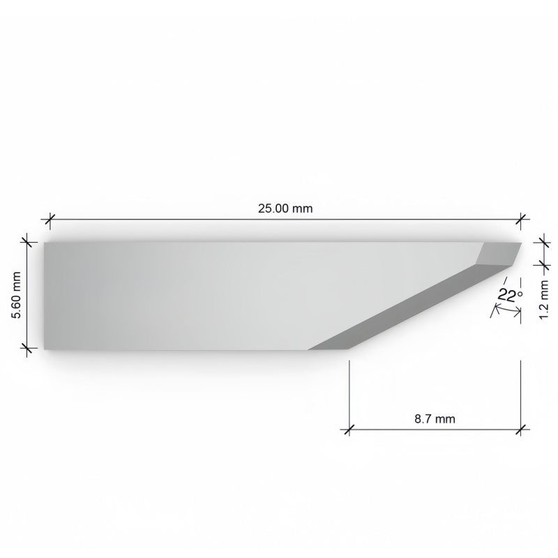 Featuring a specialized 22° / 63° dual-angle geometry, the Z26 is specifically optimized for cutting tough, fibrous, and reinforced substrates. It accommodates a maximum cutting depth of 8.70 mm, making it the ideal choice for industrial applications involving carbon fibers, glass fibers, Garlock® gasket materials, and heavy-duty tarpaulin. The 0.63 mm flat mounting ensures stability within the tool holder, while the carbide construction provides the superior edge retention necessary for maintaining precision through abrasive textiles and high-density rubbers.