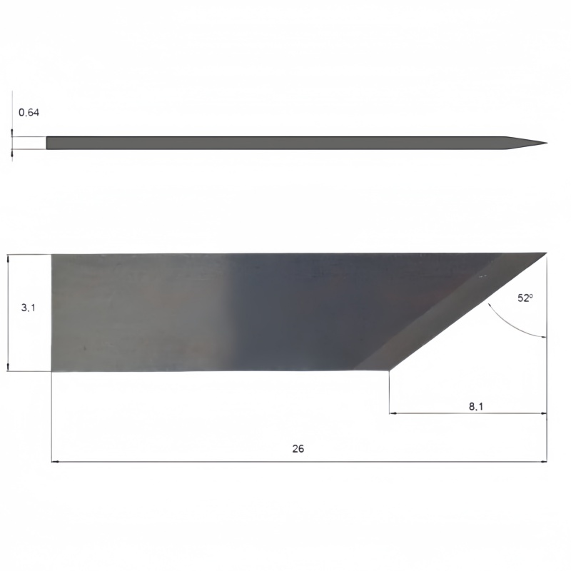 Product Description: The Z33 (Part Number: 3910333) is a precision replacement drag blade manufactured from high-performance tungsten carbide, engineered for professional passepartout and mat board cutting. This flat drag knife offers versatile cross-compatibility, serving as a direct technical replacement for the Esko Kongsberg BLD-SF233 (G42458380) and Mecanumeric COMPO008761, while also being compatible with Lectra MFC and Humantec systems.