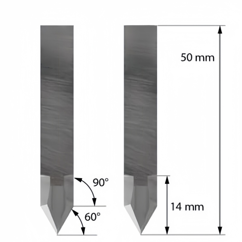 Featuring a specialized 45° / 90° cutting geometry and a 1.50 mm thickness, the Z44 is designed for high-stability performance in thick and structural substrates. It accommodates a maximum cutting depth of 14.00 mm, making it an essential tool for processing corrugated cardboard, heavy coverings, and industrial tarpaulin. The 1.5 mm flat mounting interface ensures secure tool retention and vertical accuracy during complex drag cutting operations. The high-density carbide construction provides the edge retention and mechanical strength necessary for maintaining clean, precise cuts through abrasive and multi-layered materials.