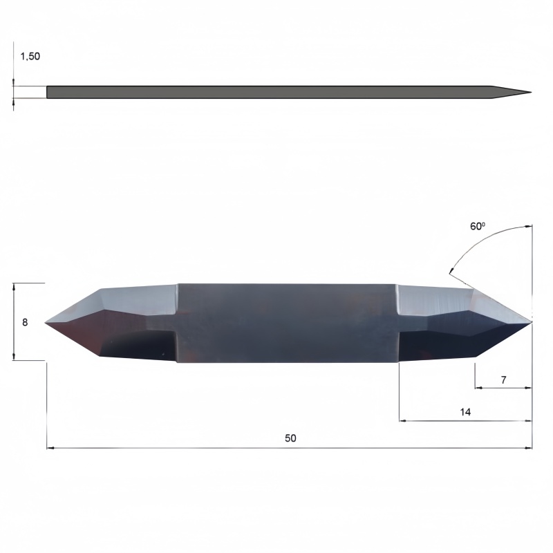 Product Description: The Z45 is a high-performance, double-sided tangential drag blade precision-manufactured from high-density tungsten carbide. Specifically engineered for Zund digital cutting systems, this blade serves as the double-edged equivalent to the Z44 model. By featuring a symmetrical double-sided grind, the Z45 offers extended tool life and increased efficiency in high-volume production environments.