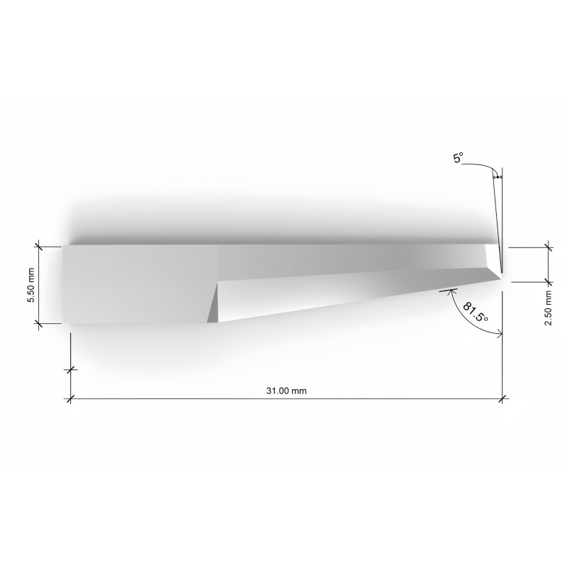Designed for deep and demanding cuts, this flat oscillating blade features a heavy-duty 1.50 mm thickness and a specialized 5° / 81.5° dual-angle geometry. It accommodates an impressive maximum cutting depth of 20.00 mm, making it an optimal choice for processing thick and structural materials such as honeycomb panels, corrugated plastic, thick foam board, and heavy-duty rubber. The 5.50 mm width combined with the 1.5 mm flat mounting ensures maximum rigidity and vertical accuracy within the tool holder, while the high-grade carbide construction guarantees exceptional edge retention and resistance to mechanical stress during high-frequency industrial oscillation.