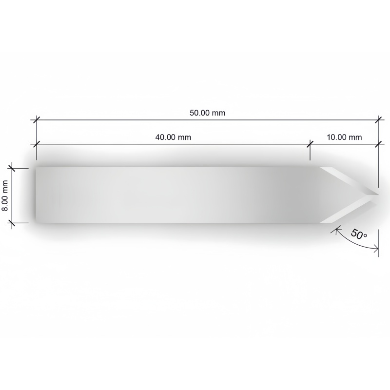 With a robust 1.50 mm thickness and a 50° cutting angle, the Z83 provides exceptional mechanical stability and edge retention. It is technically specified for a maximum cutting depth of 4.60 mm, making it an ideal choice for processing a wide array of semi-rigid materials, including PVC, Polycarbonate, Polypropylene, and hard foams. The flat 1.5 mm mounting ensures a secure, vibration-free fit within the tool holder, delivering exceptionally clean, perpendicular edges and high-accuracy cuts in industrial and sign-making applications.